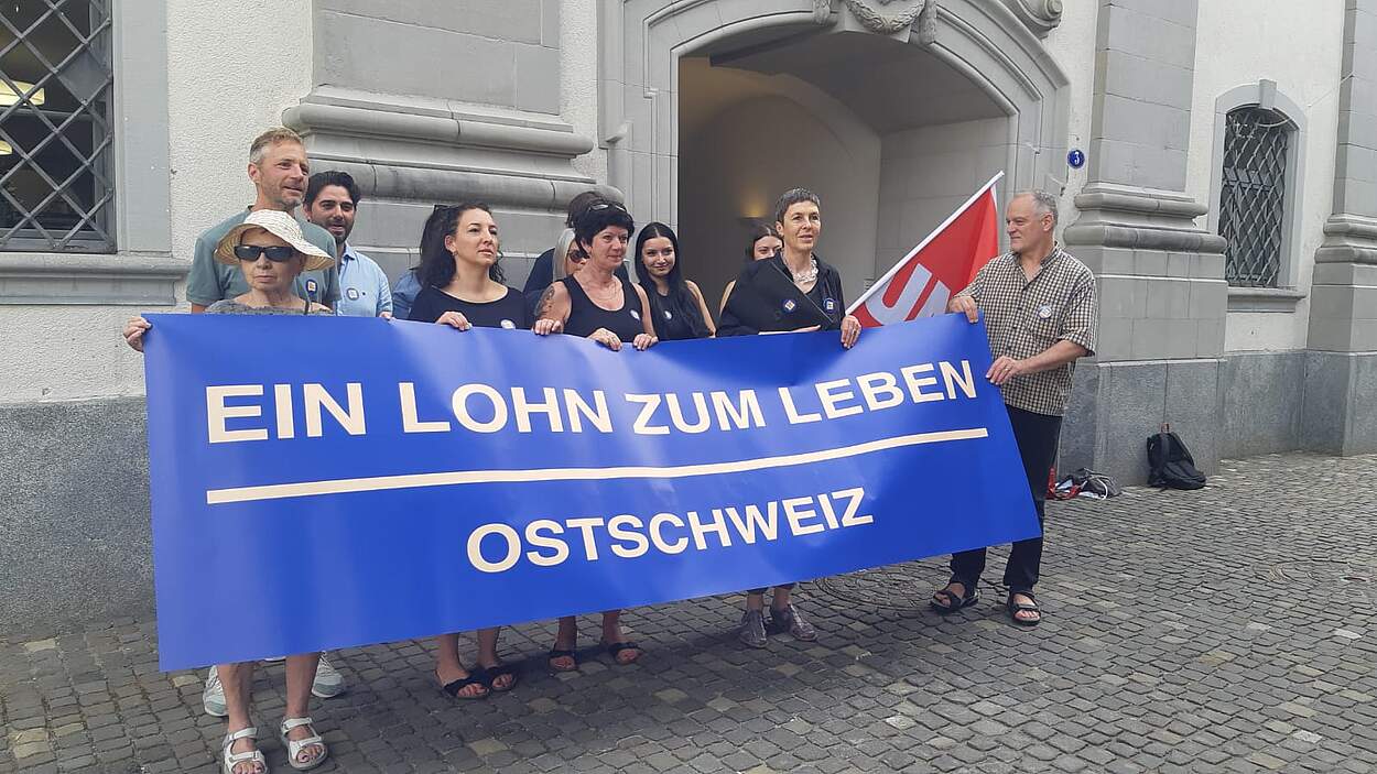 Petition für einen Mindestlohn in der Ostschweiz eingereicht. 23. Juni 2023 Ein breites Bündnis hat in den letzten Monaten Unterschriften für die Petition «Ein Mindestlohn für die Ostschweiz gesammelt». Diese Unterschriften werden mit einem Schreiben den Kantonsregierungen überreicht.Die…